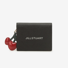 질스튜어트 체리 참장식 로고 배색 블랙 가죽 반지갑
