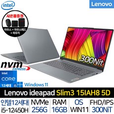 레노버 아이디어패드 SLIM3-15IAH8 5D_WIN11H 83ER005YKR 사무용 인강용 대학생 노트북 싼 가성비 노트북 윈도우11, WIN11 Home, 16GB, 256GB, i5 12450H, ARCTIC GREY