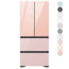 삼성전자 비스포크 4도어 냉장고 글래스 875L 방문설치, 글램 화이트(상단), 글램 핑크(하단), RF85C90F155