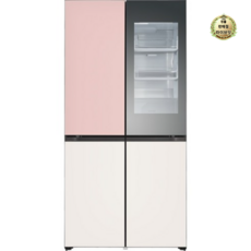 [색상선택형] LG전자 오브제 디오스 노크온 미러글라스 빌트인타입 4도어 양문형 냉장고 미스트 방문설치, 오브제컬렉션 핑크 베이지, M623GPB352S