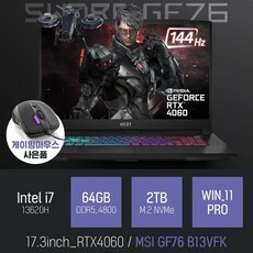 MSI Sword GF76 17.3 코어i7 인텔 13세대 지포스 RTX 4060, 블랙, 2TB, 64GB, WIN11 Pro, GF76 B13VFK