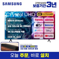 삼성 85인치(215cm) 크리스탈 UHD 4K 스마트 LED TV 스탠드무료배송설치 유튜브 넷플릭스 디즈니, 85인치, 85TU7000, 스탠드형