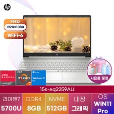 [HP] 네로 15s-eq2259AU R7-5700U 윈도우11 고성능 업무용 노트북 학생용 노트북, WIN11 Pro, 16GB, 512GB, 네추럴 실버