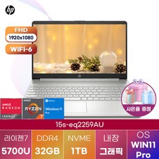 [HP] 네로 15s-eq2259AU R7-5700U 윈도우11 고성능 업무용 노트북 학생용 노트북, WIN11 Pro, 32GB, 1TB, 네추럴 실버