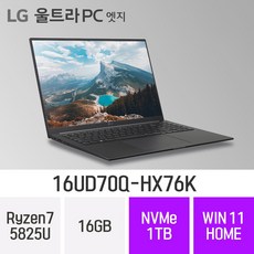 LG전자 울트라PC 엣지 16UD70Q-HX76K 16인치 대화면 휴대용 인강용 문서작업 재택근무용 업무용 가벼운 대학생 노트북, Win11 Home, 16GB, 1TB