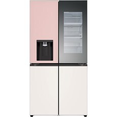 [색상선택형] LG전자 디오스 오브제 얼음정수기 글라스 4도어 노크온 냉장고 방문설치, 핑크 + 베이지, W824GPB472S