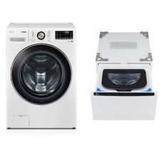 LG전자 트롬 세탁기 + 트윈 미니워시 세트 F21WDLPX 21kg + 4kg 방문설치, 화이트 유광(세탁기) ,릴리 화이트(미니워시)