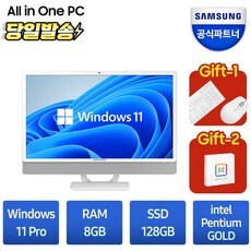 삼성전자 올인원 일체형 PC 프로스트 화이트 DM530ADA-L25A (펜티엄골드 7505 60.5cm WIN11 Pro) 기업용 사무용 학습용, RAM 4GB + SSD 128GB
