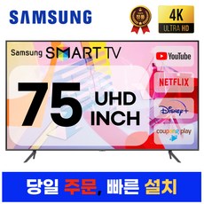삼성전자 75인치 23년형 크리스탈 UHD 스마트 LED TV 75CU7000 넷플릭스 유튜브 디즈니, 수도권벽걸이설치