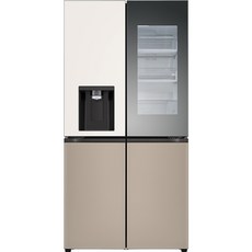 [색상선택형] LG전자 디오스 오브제컬렉션 4도어 매직스페이스 얼음정수기 냉장고 글라스 방문설치, 베이지(상단), 클레이 브라운(하단), W824GBC172S