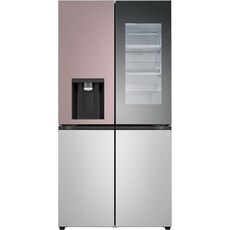 [색상선택형] LG전자 디오스 오브제 얼음정수기 글라스 4도어 노크온 냉장고 방문설치, 핑크 + 베이지, W824GPB472S