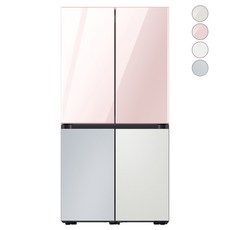 삼성전자 비스포크 4도어 냉장고 글래스 875L 방문설치, 글램 화이트(상단), 글램 핑크(하단), RF85C90F155
