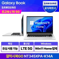 삼성전자 갤럭시북Go NT345XPA-K14AS 윈도우탑재 태블릿 휴대용 가성비 학생용 문서작성 셀룰러 데이터공유 LTE USIM, WIN11 Home, 4GB, 128GB, 실버