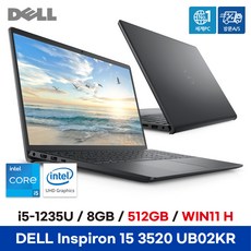 DELL 인스피론15 DN3520-UB02KR *UB07KR 모델로 출고됩니다*, WIN11 Home, 8GB, 512GB, 카본블랙