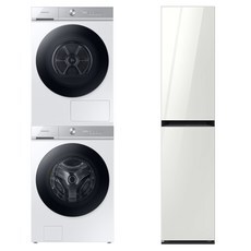 삼성전자 BESPOKE 의류케어패키지 WF21DV17WLF18W 그랑데 AI 드럼세탁기 + 건조기 + 21kg + 17kg + 에어드레서 일반용량 + 상단설치키트 + 아로마시트 방문설치, 화이트(세탁기), 글램화이트(에어드레서)