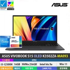 (당일발송) ASUS VIVOBOOK S 15 OLED K3502ZA-MA093 12세대 i5-12500H/16GB/256GB/Win11Pro/OLED/2880x1620/15.6, ASUS VIVOBOOK K3502ZA-MA093, WIN11 Pro, 16GB, 256GB, 코어i5, 인디 블랙