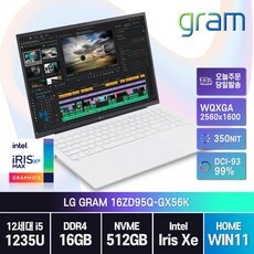 [ 무선마우스증정 ] LG전자 그램16 16ZD95Q-GX56K 16인치 노트북, 화이트, 16ZD95Q, 코어i5, 512GB, 16GB, WIN11 Home