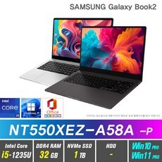 삼성전자 갤럭시북2 NT550XEZ-A58A +Windows 포함 12세대 i5, 삼성 NT550XEZ-A58A, WIN11 Pro, 32GB, 1TB, 12세대 인텔 코어 i5, 실버&그라파이트