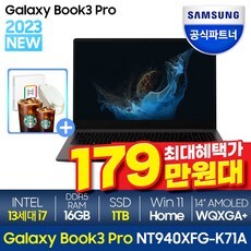 삼성전자 노트북 갤럭시북3 프로 13세대i7 14인치 윈도우11, WIN11 Home, 그라파이트, 1TB, 코어i7, 16GB, NT940XFG-K71A