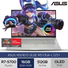 에이수스 2021 VivoBook 15 OLED 15.6, 투명실버, 라이젠7, 512GB, 16GB, WIN11 Home, M513UA-L1251
