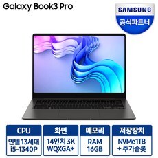 삼성전자 갤럭시북3 프로 NT960XFT-A51A 13세대 16인치 삼성노트북 고해상도 사무용 노트북 기업용 노트북 대학생노트북, 그라파이트, 코어i5, 512GB, 16GB, WIN11 Home