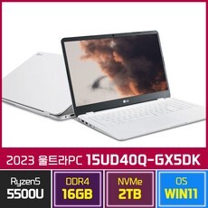 LG전자 2023 울트라PC 15UD40Q-GX5DK 윈11홈 15인치 AMD 라이젠 R5-5500U, 화이트, 라이젠5, 2TB, 16GB, WIN11 Home