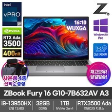 HP ZBOOK FURY 16 G10-7B632AV A3 RMW 인텔i9-13950HX_32GB램_SSD2TB_RTX3500Ada 영상편집 3D 렌더링 모바일 워크스테이션노트북, 실버, 코어i9, 2TB, 32GB, WIN10 Pro